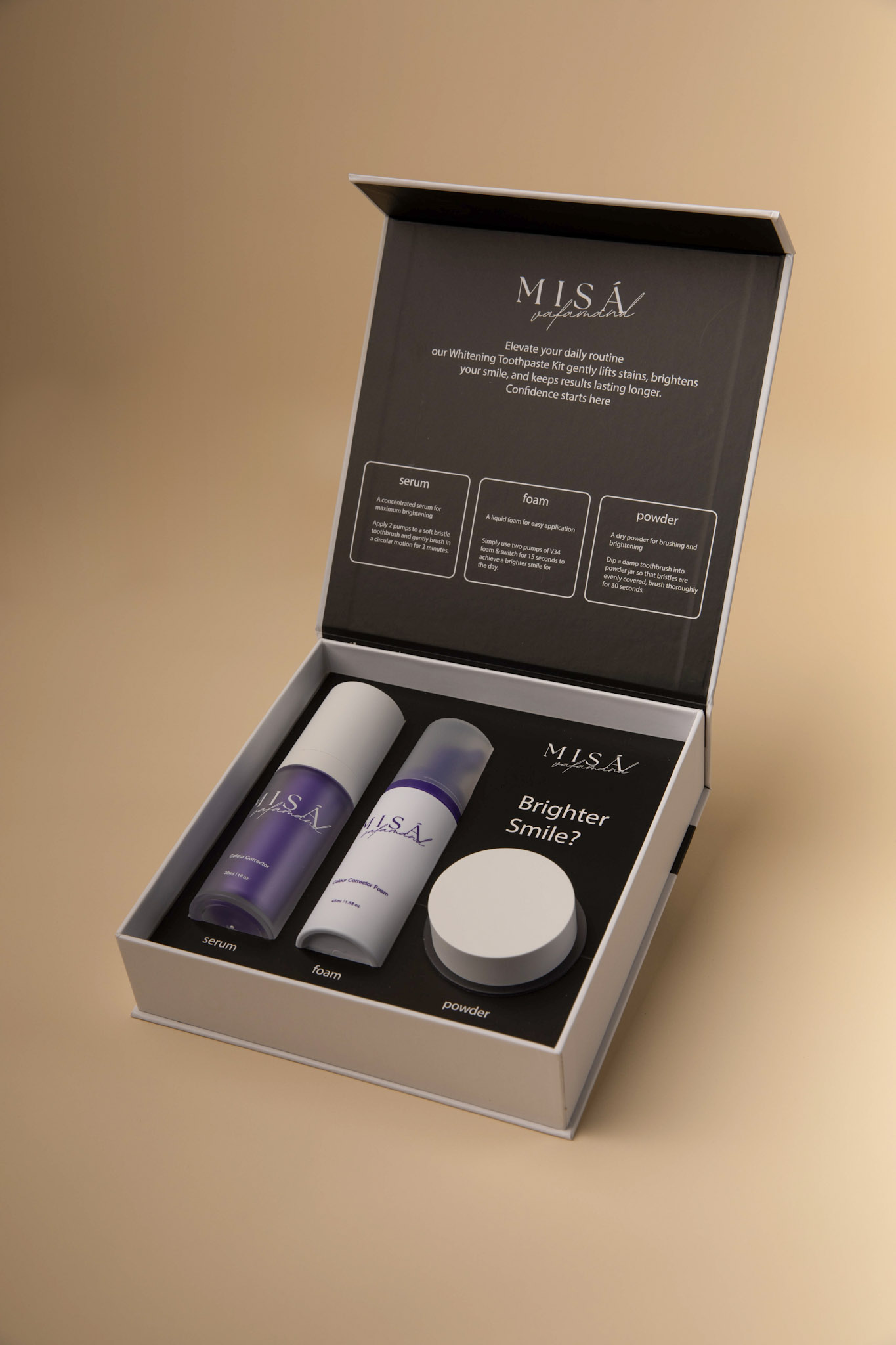 It includes serum, foam, and powder.